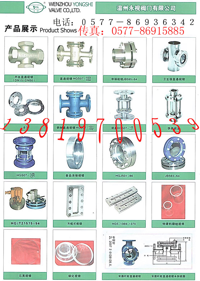 溫州永視閥門有限公司 直通視鏡尺寸圖!